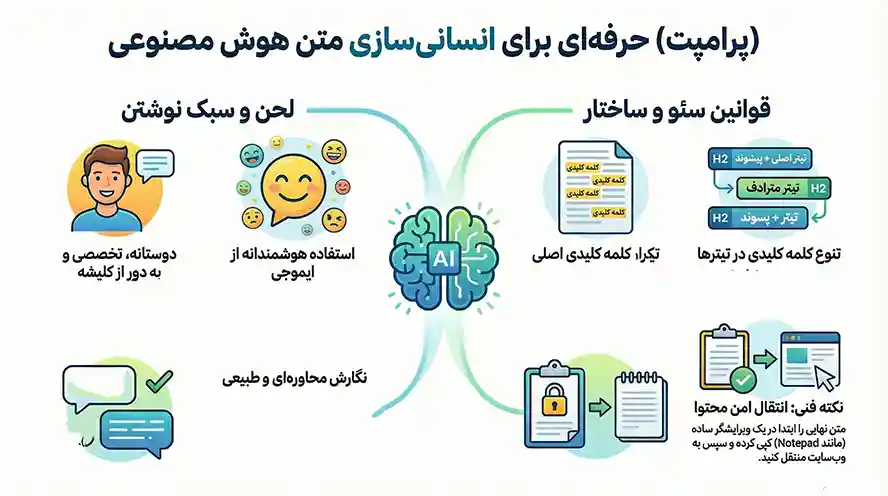 تبدیل مقاله ساخته شده با هوش مصنوعی به مقاله انسانی با پرامپت اماده- تبدیل متن هوش مصنوعی به انسانی